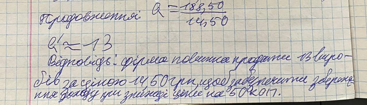 фірма за ціною 15 грн продає 12 виробів. щоб продати 13 виробів вона повинна знизити ціну на 50 коп.