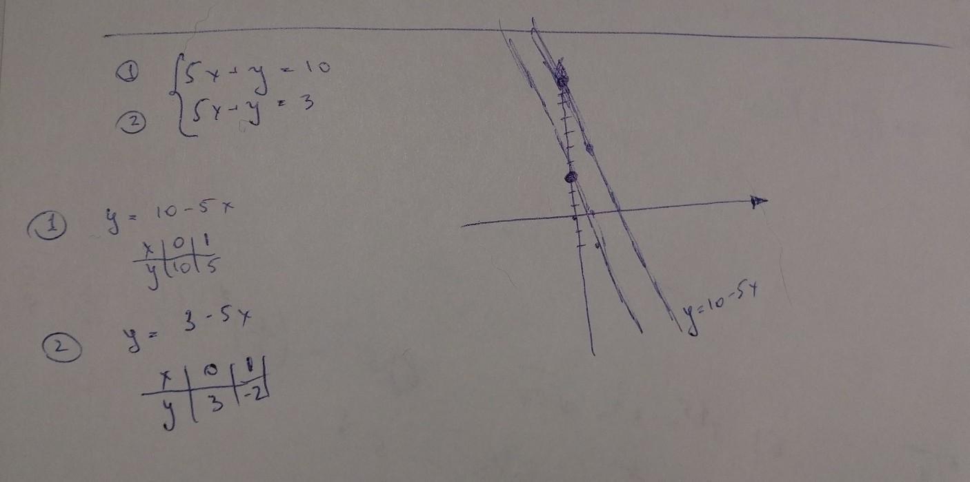 система не имеет решения, так как коэф k у 2 уравнений одинаковый = графики на рисунке паралельные