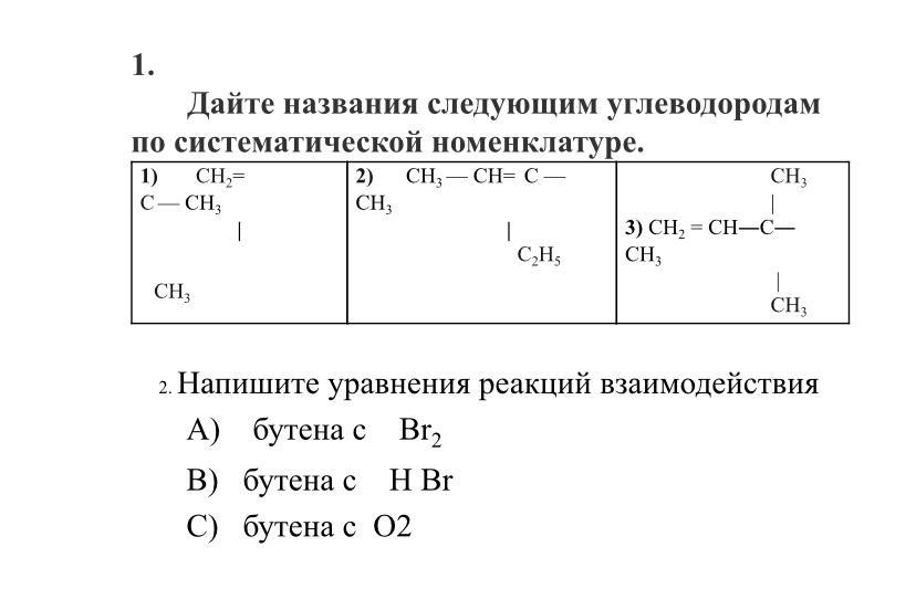 2) а) СН2=СН-СН2-СН3 + Br2= СН2Br-СHBr-СН2-СН3