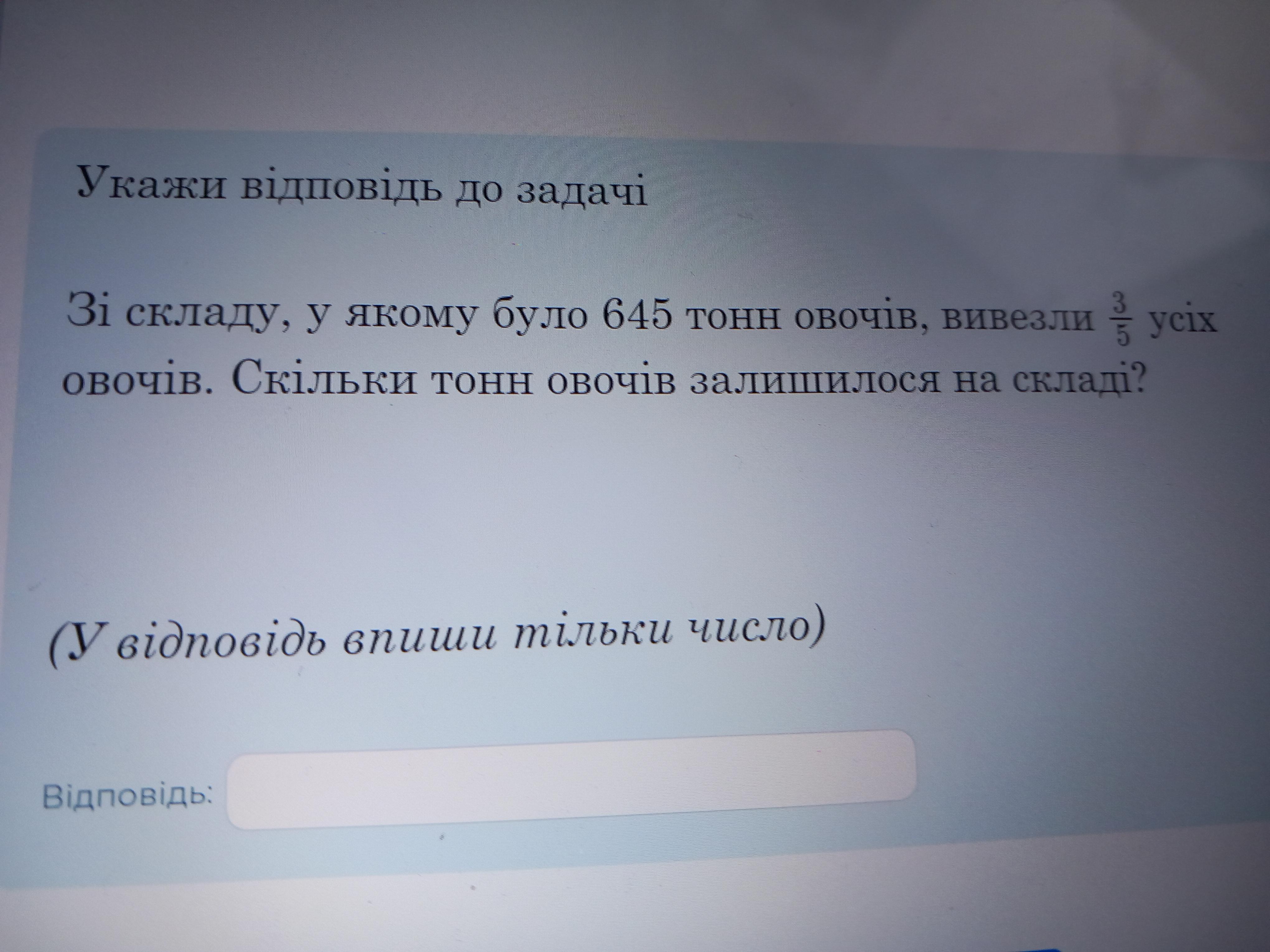 1) 3/5 * 645 = 3/1 * 129 = 387/1 = 387 (т) - овощей вывезли со склада
