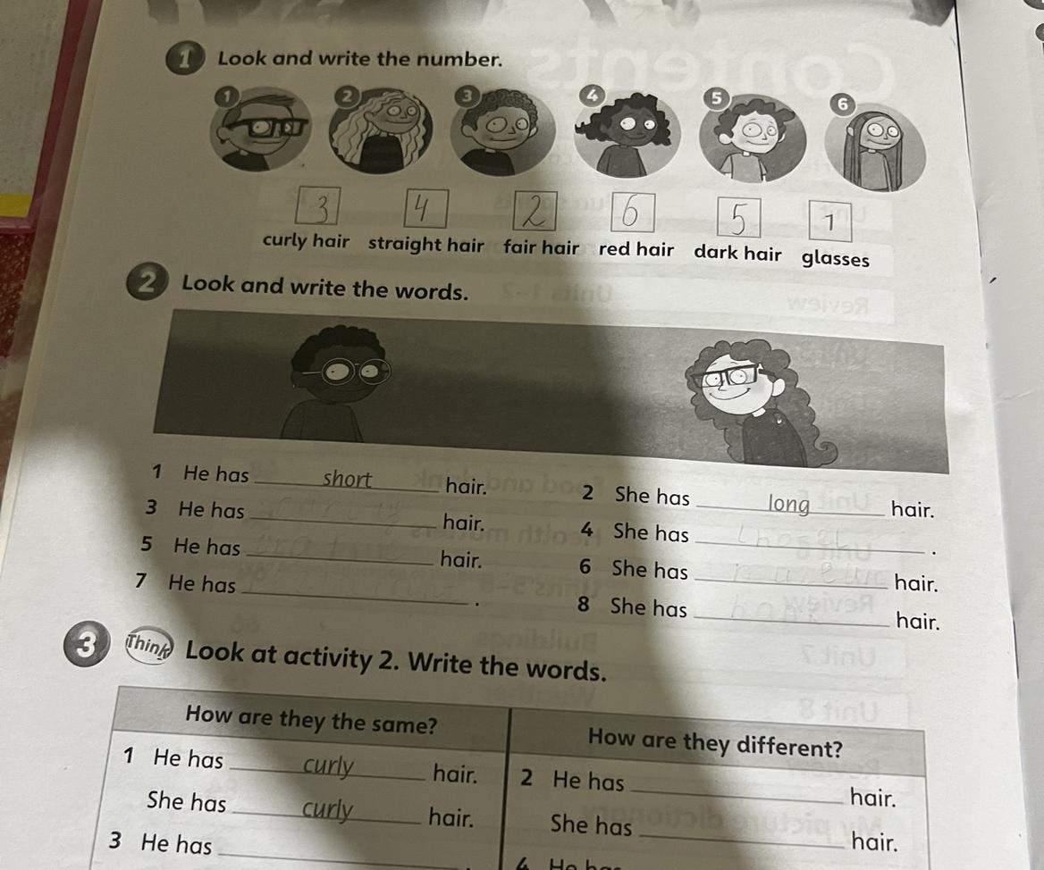 3)He has curly hair.