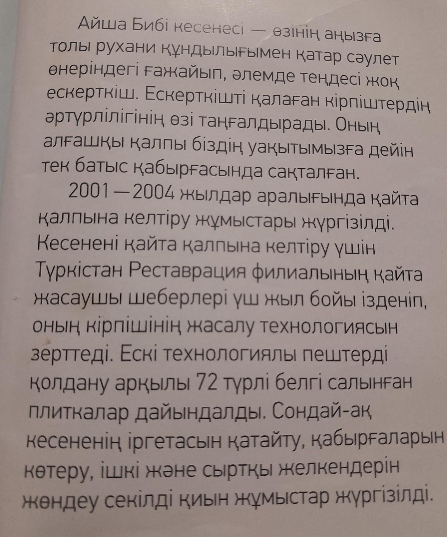 Айша Бибі кесенесі әлемде теңдесі бар ма? Ол қай қабырғасында орналасқан? Қай жылдары қайта келтірді? Қай қалада орналасқан? Қанша плиткалар дайындады? Ол қаншалықты қиын ба әлде оңай ма жұмыстар жүргізілді?