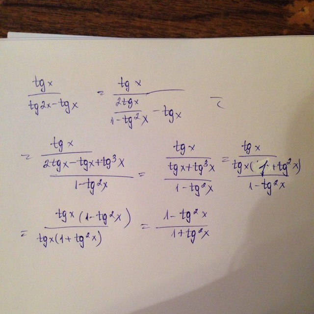 Я разложила тангенс двойного угла по формуле:tg2x=2tgx/(1-tgx^2), а дальше только преоьразовала.