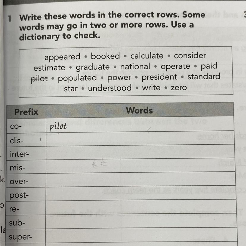 1 Write these words in the correct rows. Some