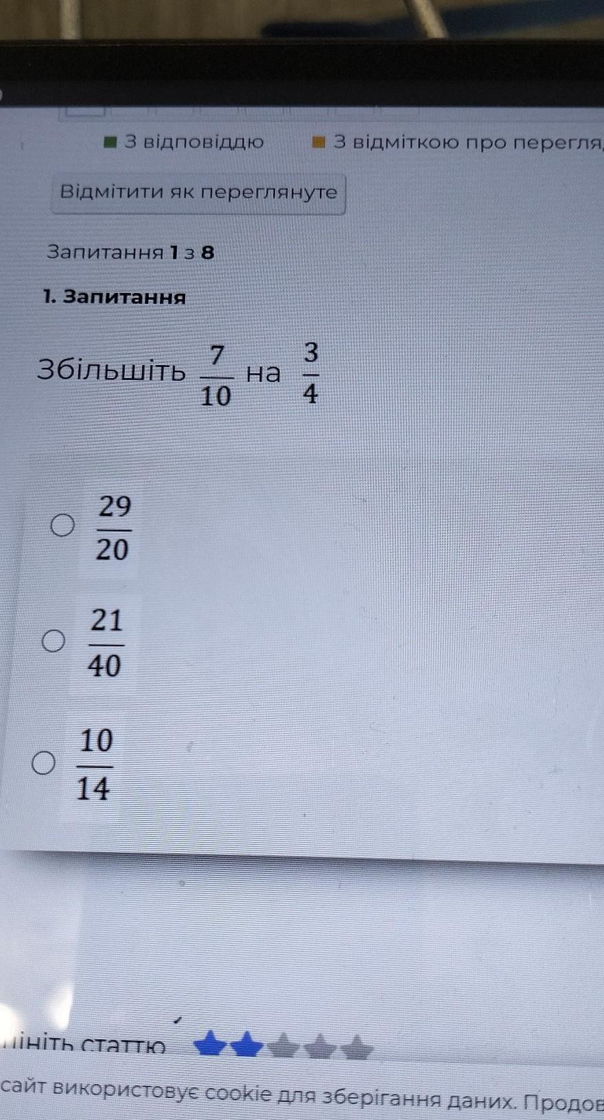 7/10 + 3/4 = 14/20 + 15/20 = 29/20