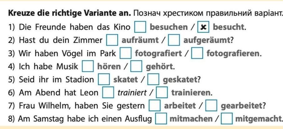 8) Am Samstag habe ich einen Ausflug gemacht.