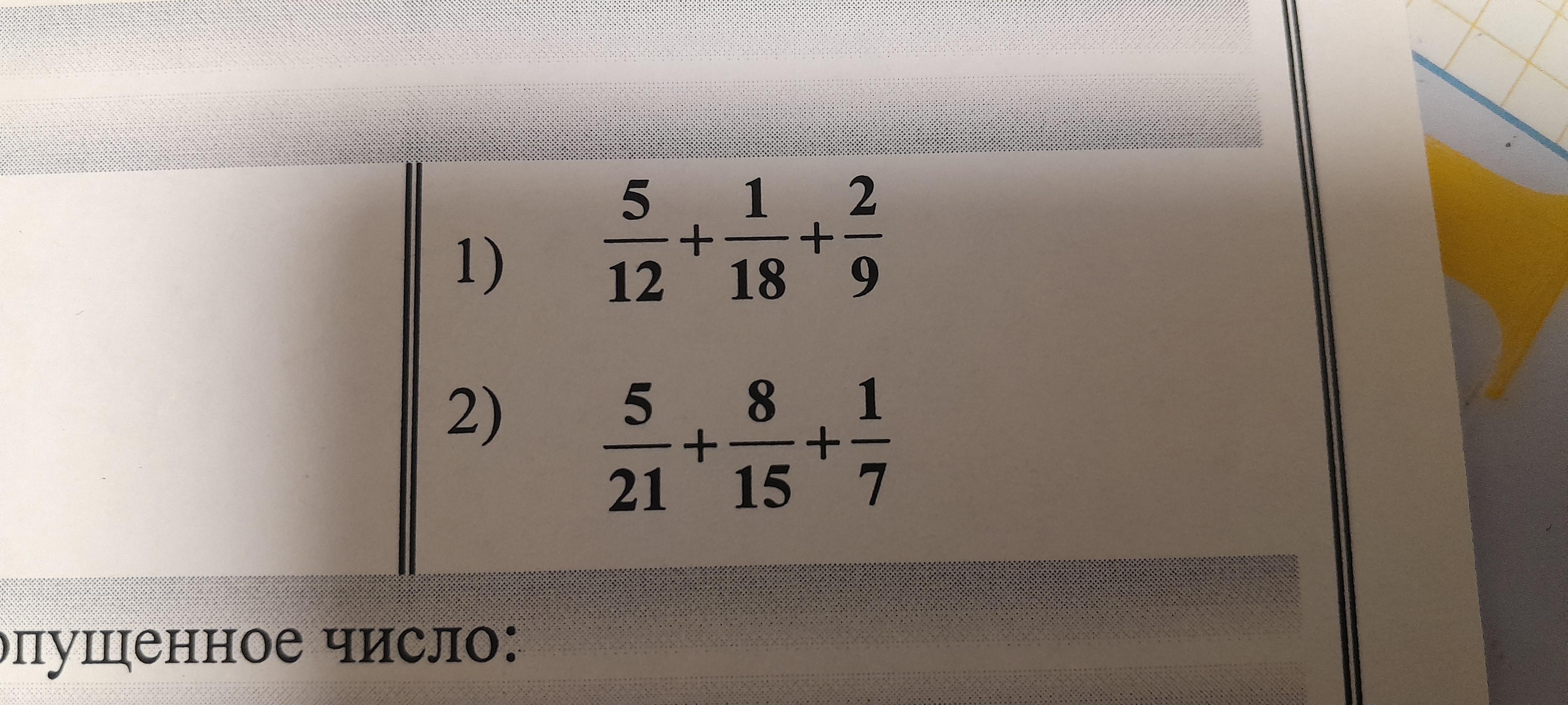 5/12 + 1/18 + 2/9 => НОК(12;18;9)= 36 =>