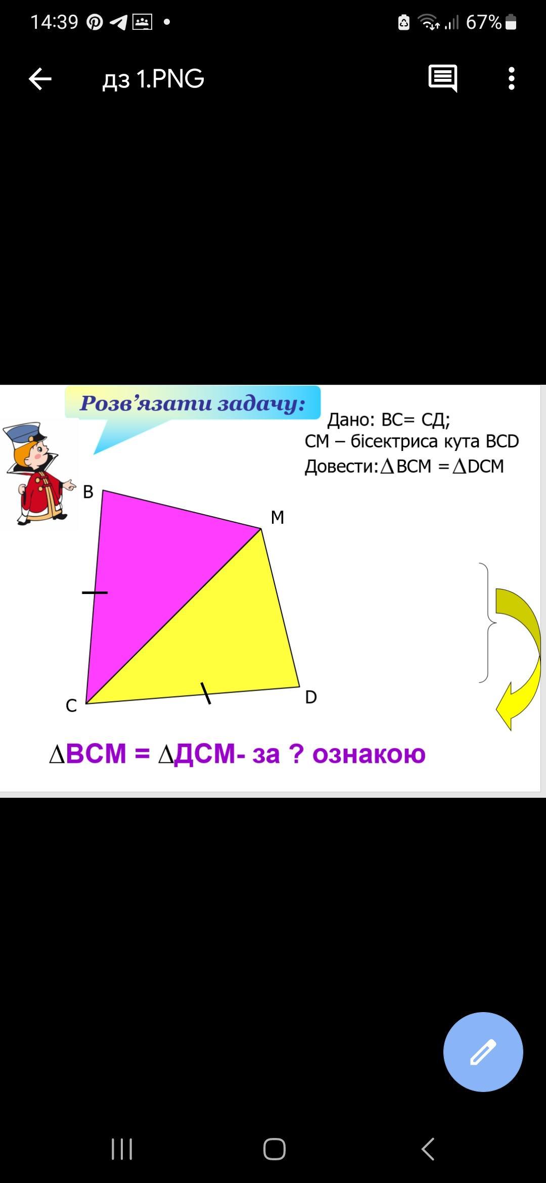 Перше фото: За 1 ознакою рівності трикутників (за 2 сторонами і кутом між ними: BC=CD,