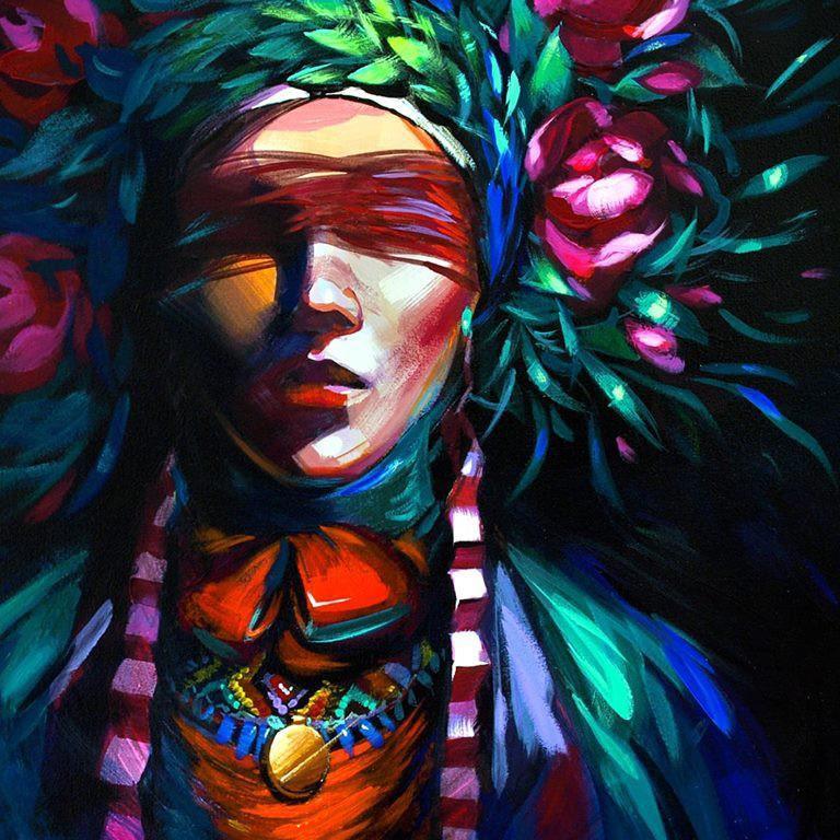 Автор вдало вибрав палітру, в якій переливаються відтінки кольорів, надаючи зображення атмосфери та загадковості. Лінія шкіри, кожен витончений штрих мають своє власне значення, що створює враження неповторності та глибини.
