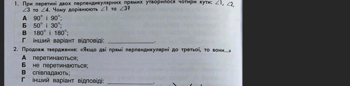 2. Продовж твердження: «Якщо дві прямі перпендикулярні до третьої, то вони...»
