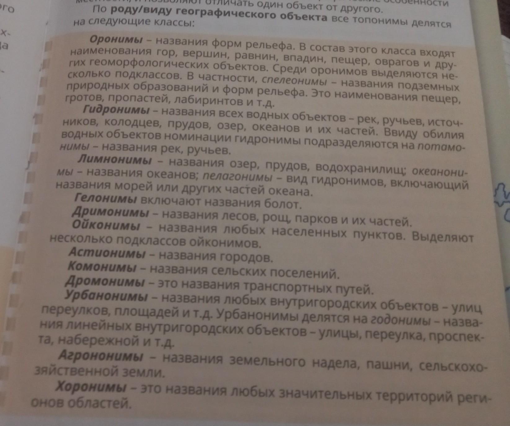 Это лишь небольшой обзор возможных классов топонимов. Разделение может быть более детализированным и в зависимости от конкретного контекста, порядка и цели классификации.