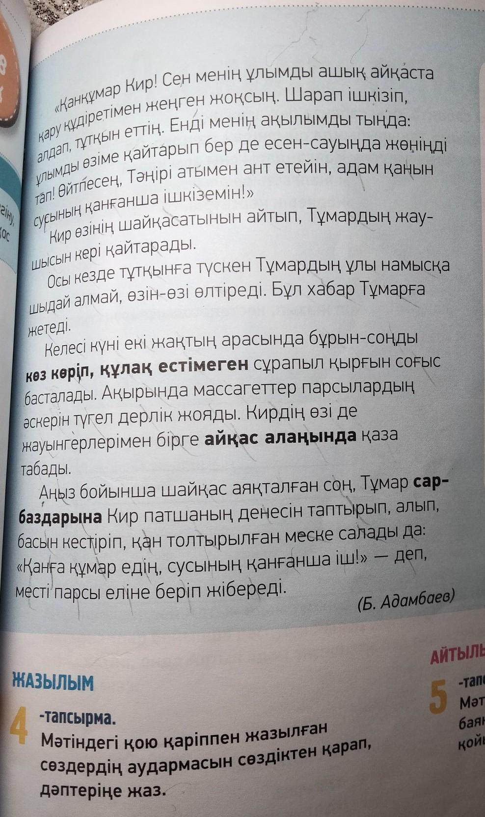 АЙТЫЛЫМ 5 -тапсырма. Мәтіннің әр ой бөлігіндегі оқиғаны баяндаңдар. Мәтіннің мазмұнына сай ат қойыңдар.