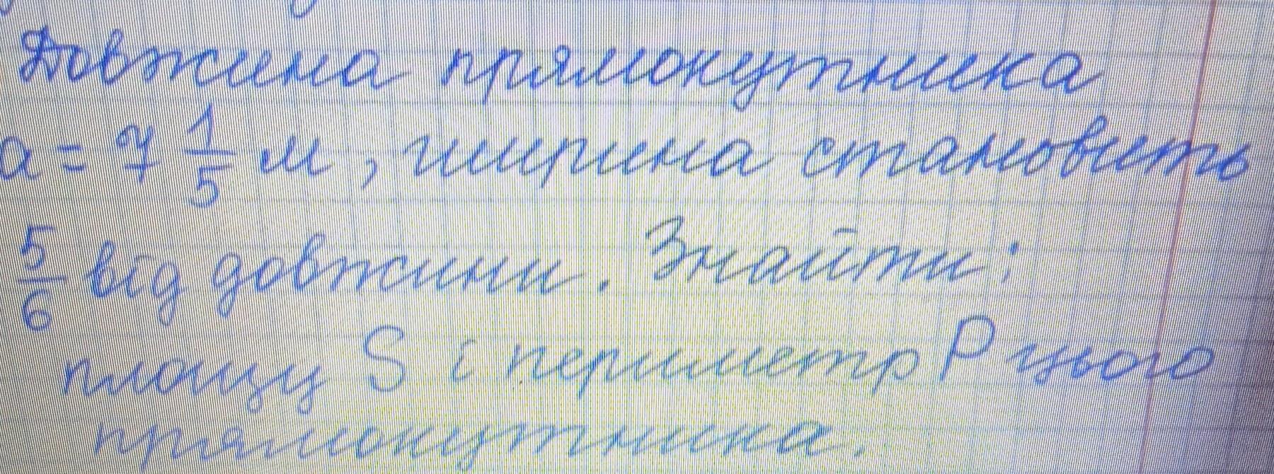 Пошаговое объяснение:7 4/5 поділити на 5/6=6. P=(7 4/5+6)помножити на 2. S=7 4/5 помножити на 6.