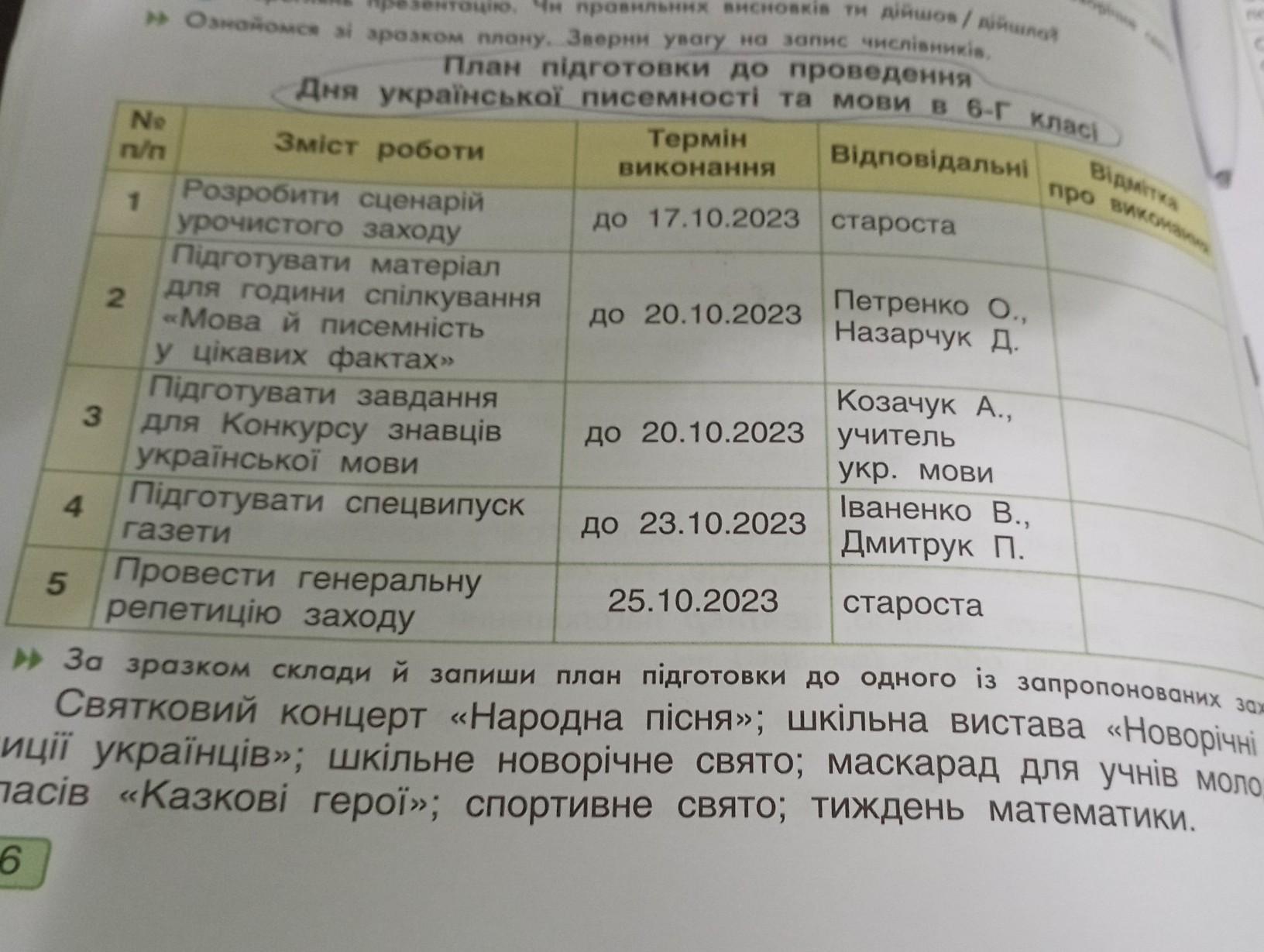 План пiдготовки до проведення Дня української писемності та мови в 6-Г класі