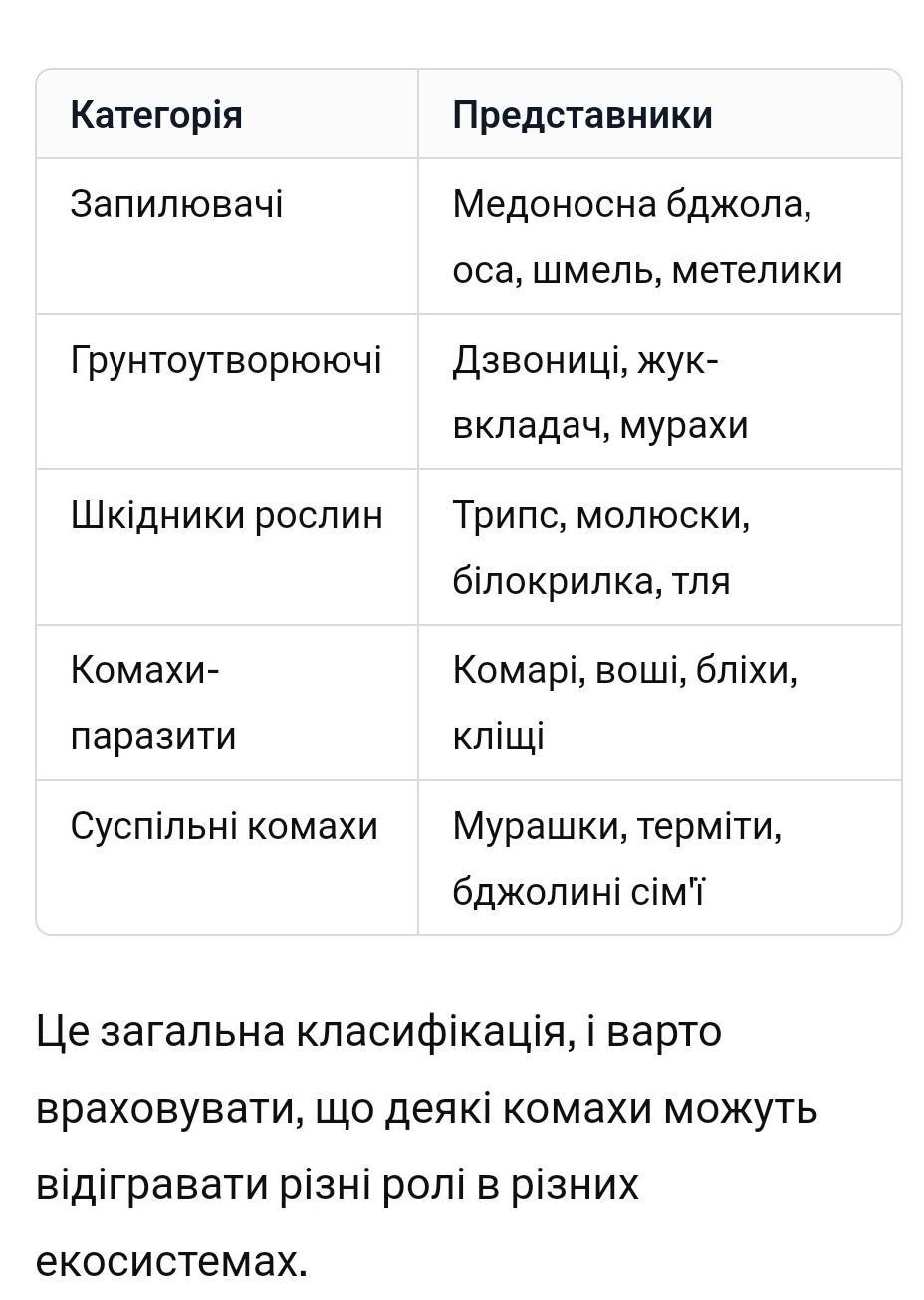 Скласти таблицю класифікація комах: виписати представників: комахи -запилювачі, грунтоутворюючи, шкідники рослин, комахи-паразити, суспільні комахи. ДАЮ 40 БАЛОВ!!!