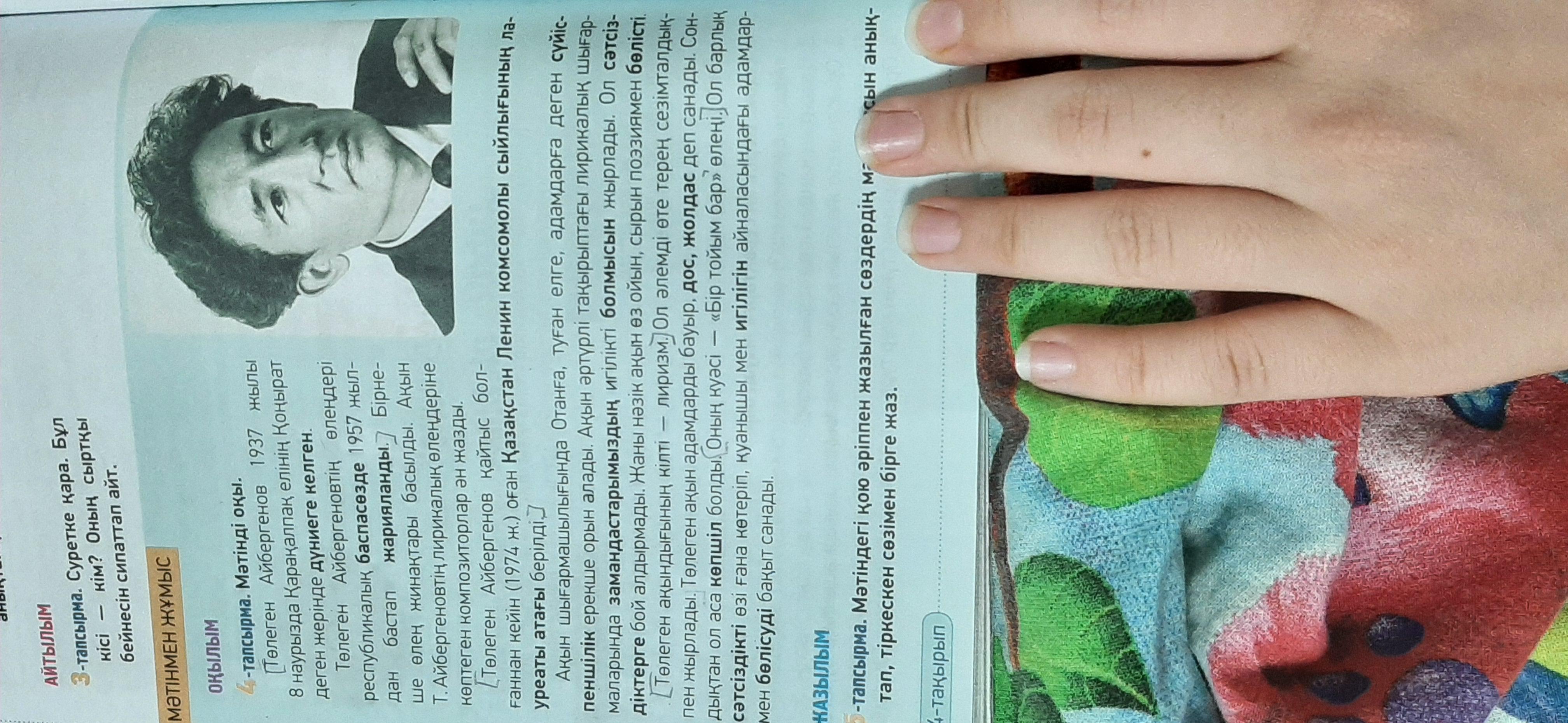 Ответ:1 абзац) Төлеген Айбергенрвтың туу.