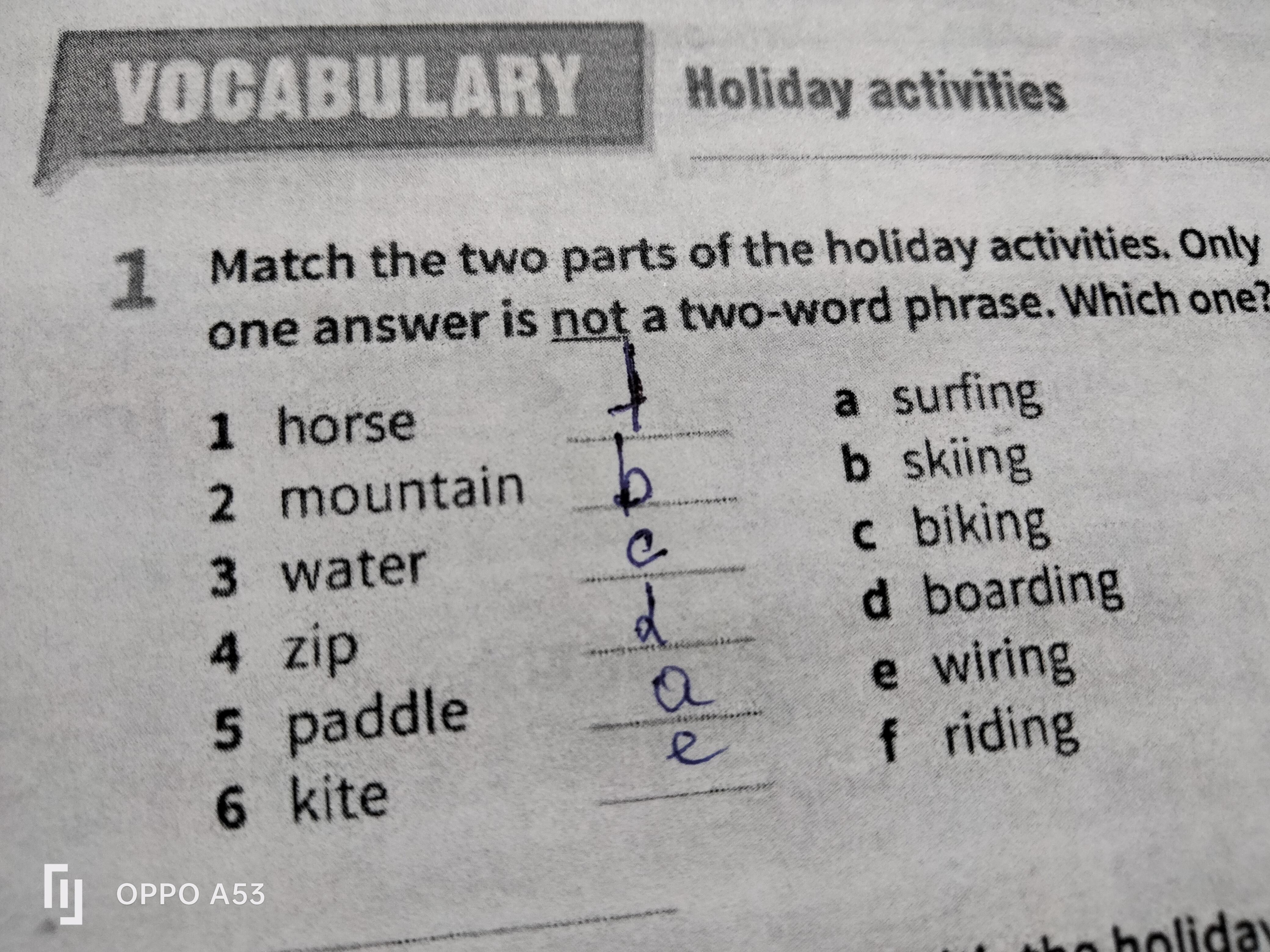 match the two parts of the holiday activities. Only one answer is not a two-word phrase. Which one.