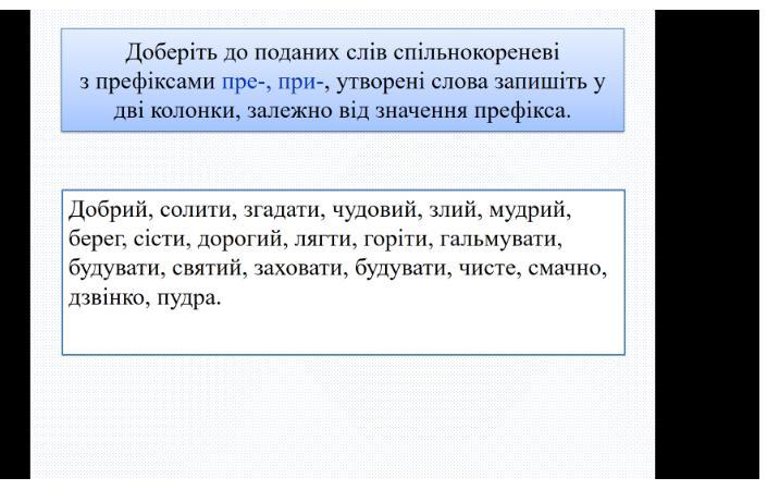 предобрий, присолити, пригадати, пречудовий, презлий, примудрий, приберег, пересісти, предорогий, прилягти, пригоріти, пригальмувати, прибудувати, пречисте, пресмачно, предзвінко