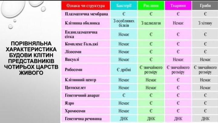 1) Розгляньте на малюнках особливості будови клітини бактерій, грибів, рослини,