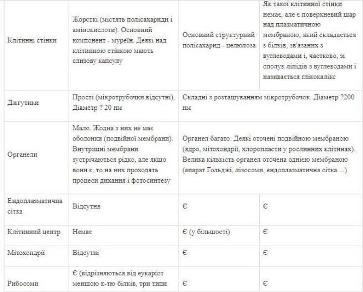 До прокаріотів належать бактерії, до еукаріотів рослини, тварини й гриби.Їхні клітини мають різну організацію.