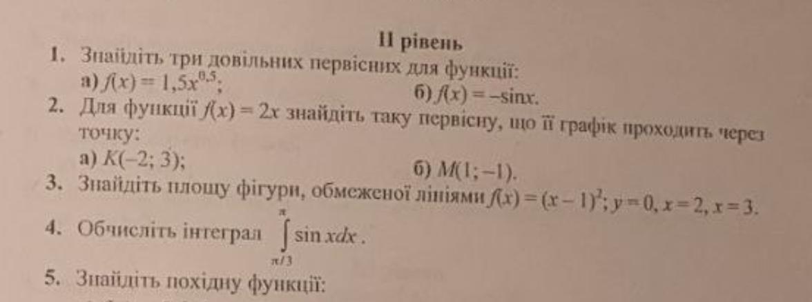 1. Знайдемо три довільних первісних для функцій: