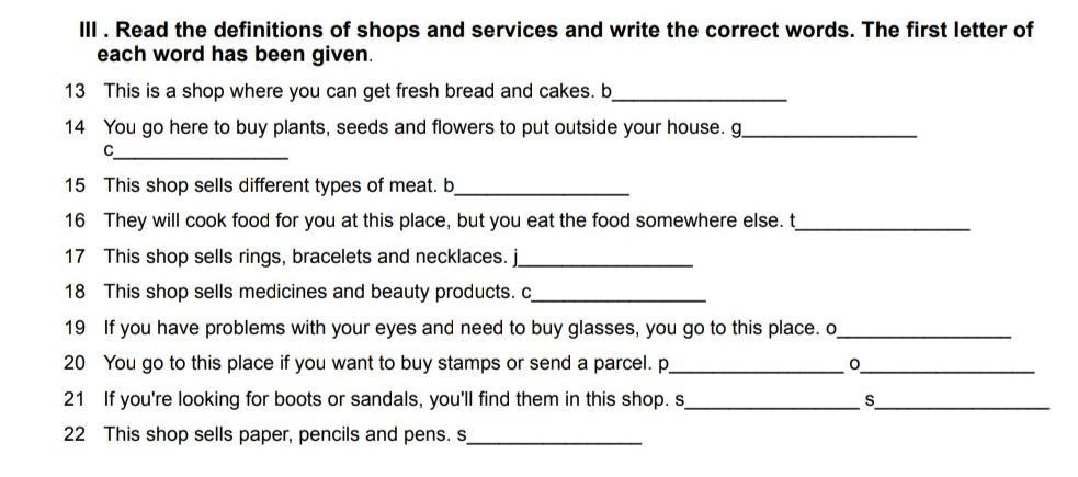 18. This shop sells medicines and beauty products. **Chemist's**
