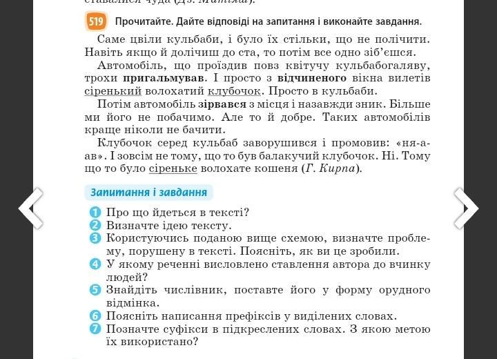 1. Текст описує ситуацію, де кульбаби цвіли, і волохате кошеня потрапило серед них після того, як автомобіль викинув його в їхню галюзину.