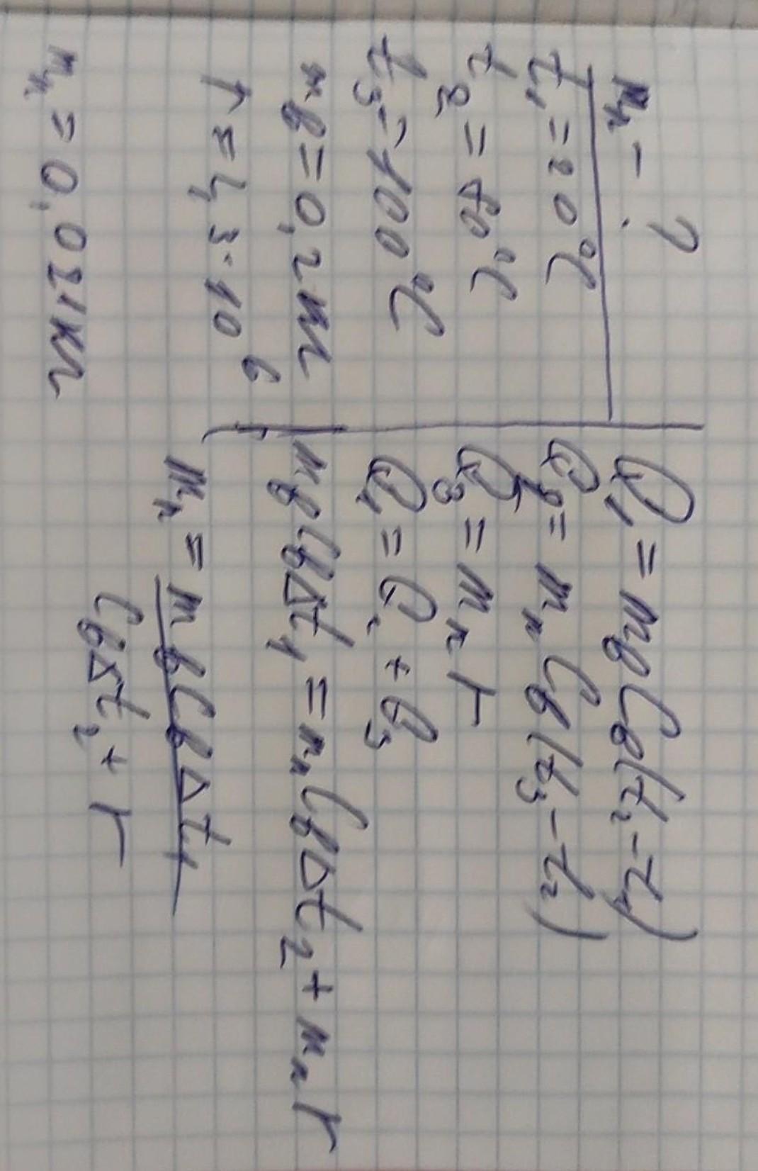 Калориметр містить 200 г води при 20°С. Після того як у ка- лориметр впустили пару, температура якої 100°С, температура води в калориметрі піднялась до 80°С. Визначте масу пари. Те- плоємністю калориметра знехтуйте. ДОПОМОЖІТЬ ТЕРМІНОВО, З ПОВНОЦІНИМ РОЗВЯЗКОМ