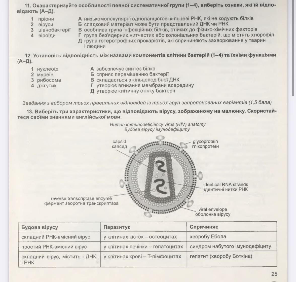 13. Виберіть три характеристики, що відповідають вірусу, зображеному на малюнку. Скористай-