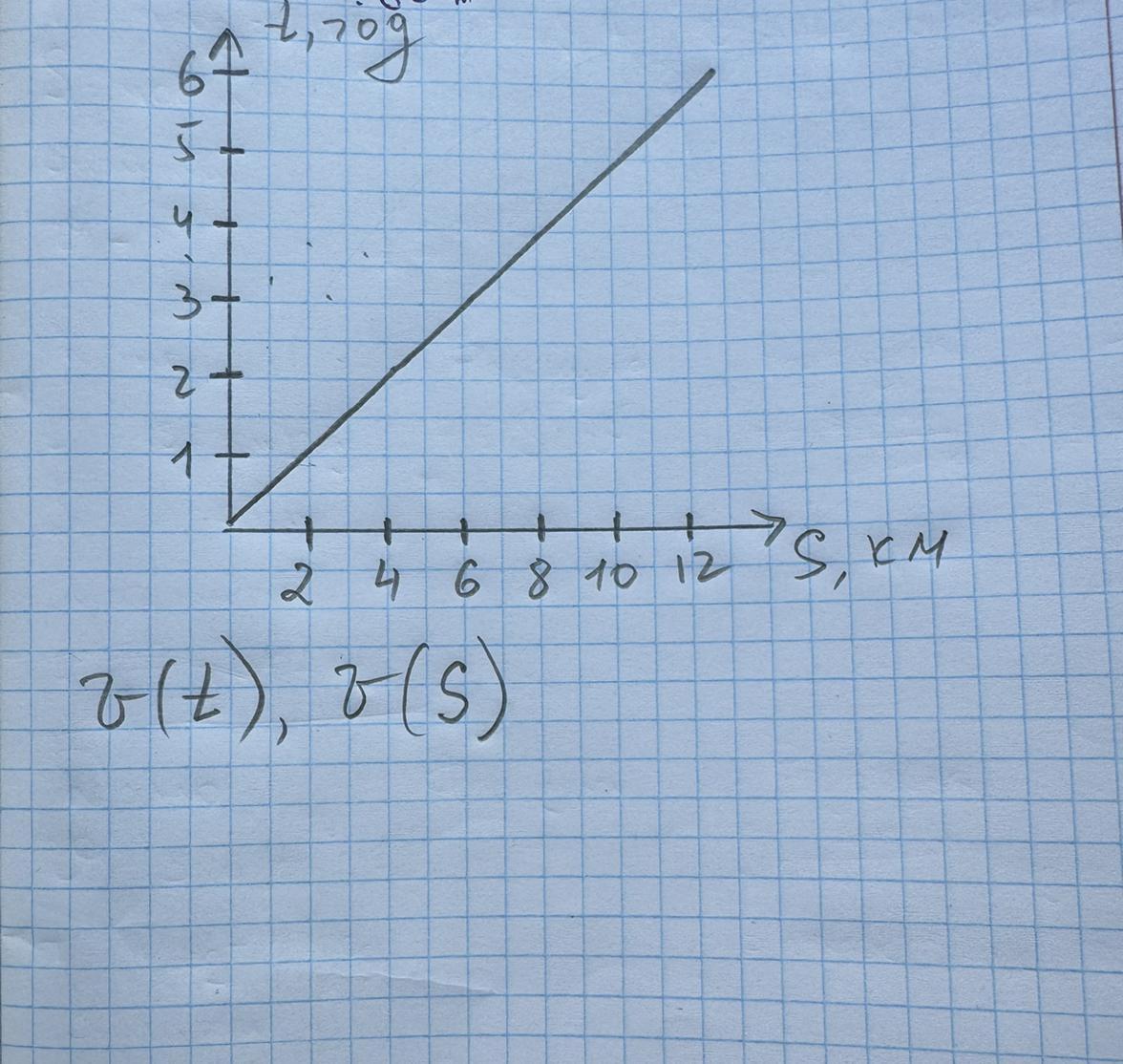 υ(t), υ(S) ? υ(t)=ΔS/Δt=12/6=2 км/год; υ(S)=2 км/год кроме т. 0