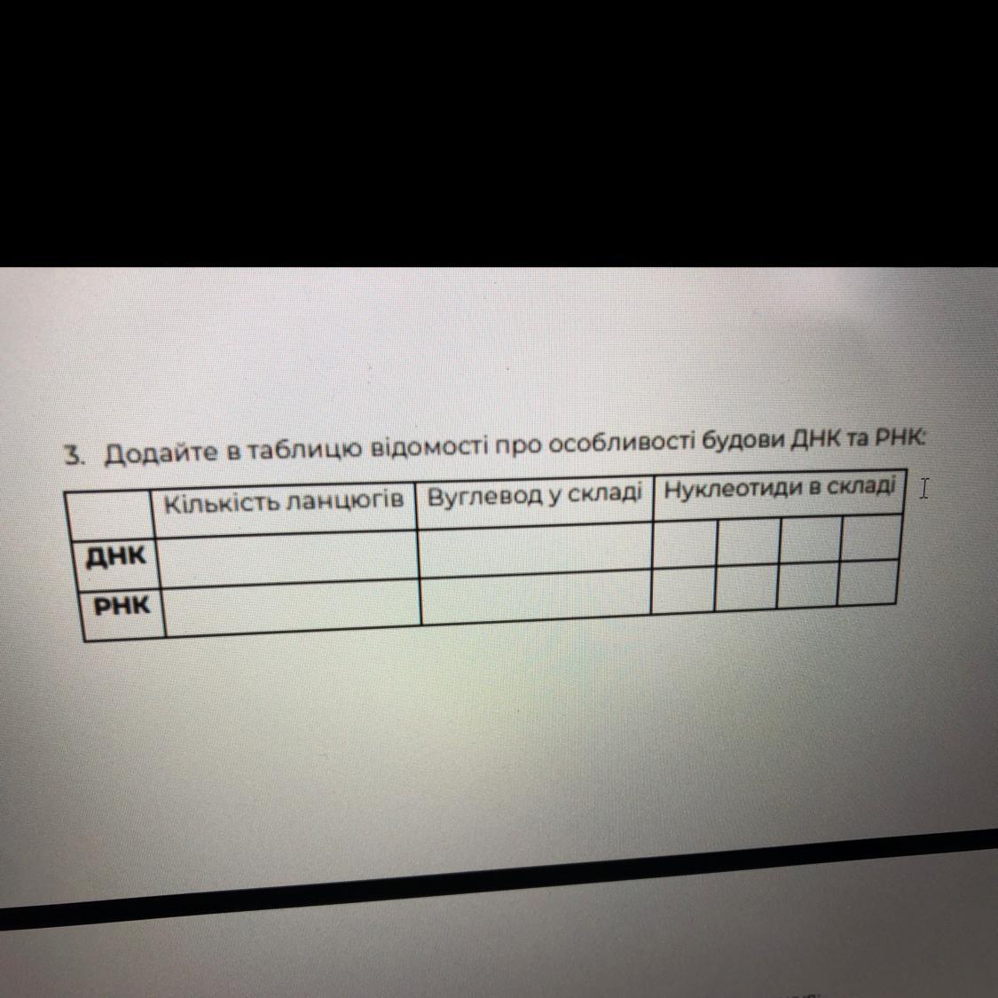 РНК - А (аденін), Г (гуанін), Ц (цитозин), У (урацил)
