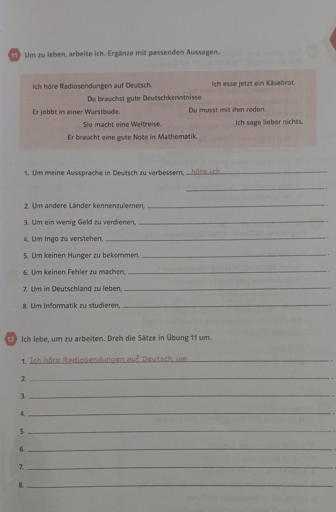 11) 1. Um meine Aussprache in Deutsch zu verbessern, höre ich Radiosendungen auf Deutsch