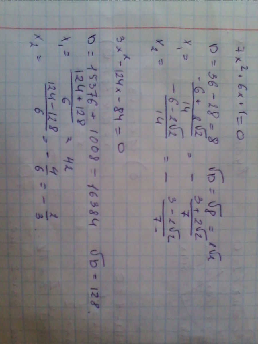 X1 = ( - 6 + 2 V 2 ) / 14 = ( - 3 + V 2 ) / 7