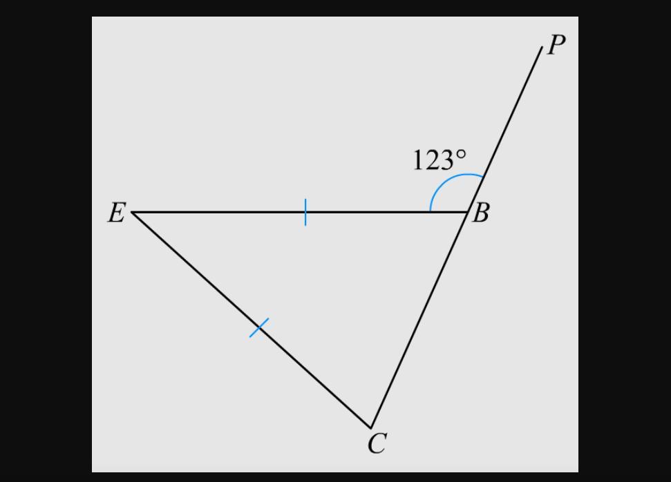 Дано: ∠ЕВС = 123°, ЕС = ЕB.