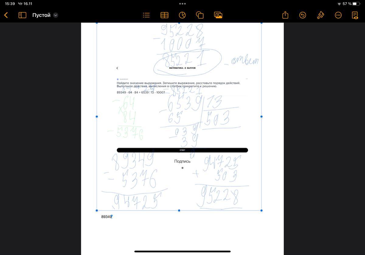 89349 - 64 ⋅ 84 + 6539 : 13 - 10007