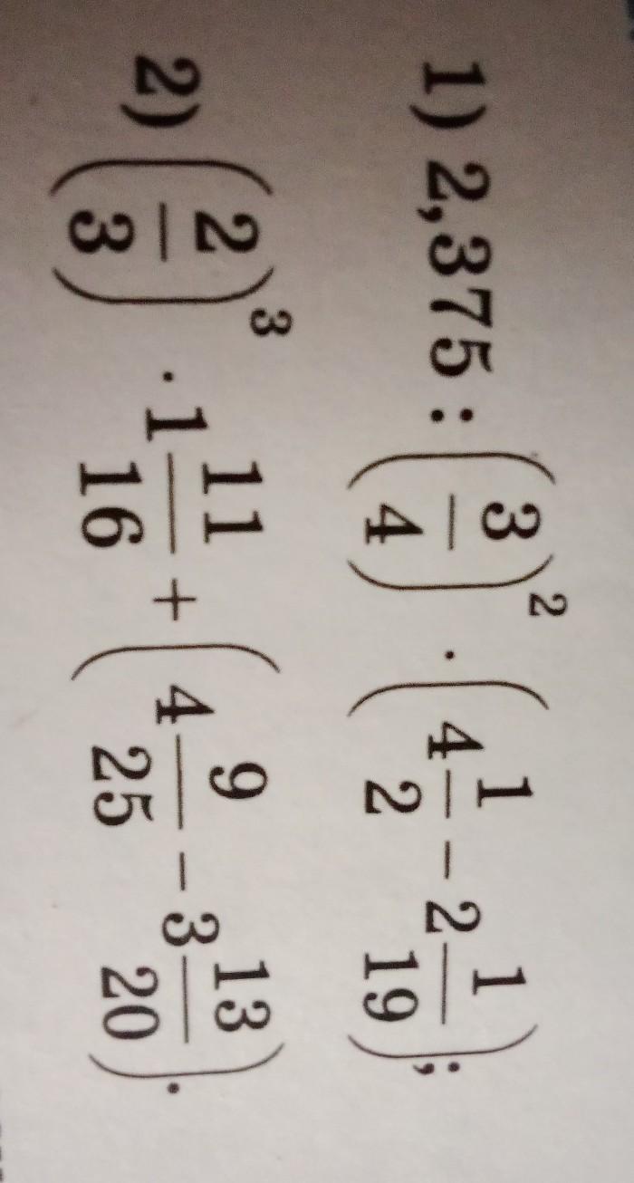 1) 2,375 : (3/4)² = 2 3/8 : (3/4 * 3/4) = 2 3/8 : 9/16 = 19/8 * 16/9 = 304/72 = 38/9