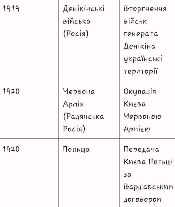 Складіть хронологічну таблицю (обравши за основу місто Київ) і покажіть,