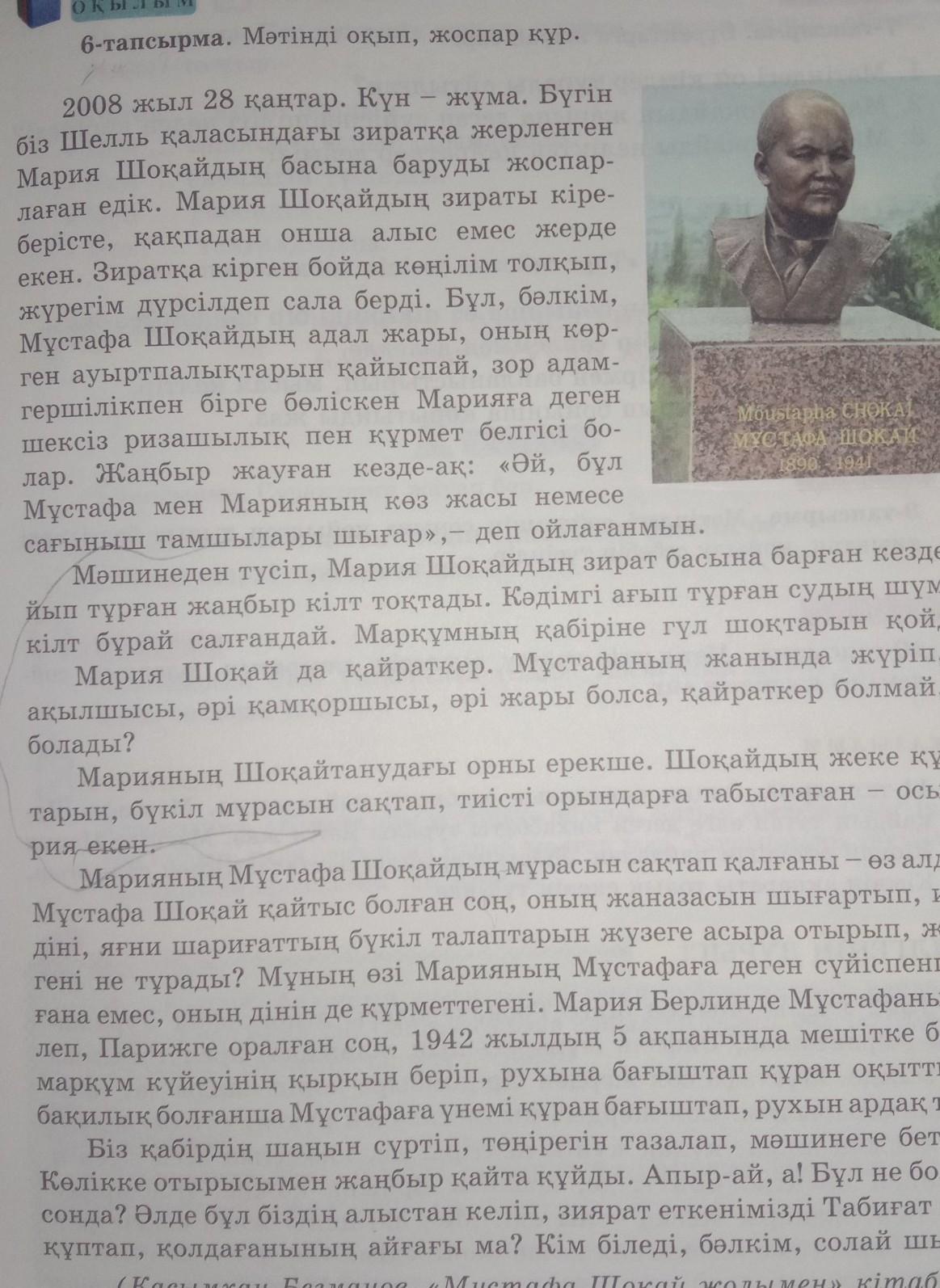 6-тапсырма. Мәтінді оқып, жоспар құр.