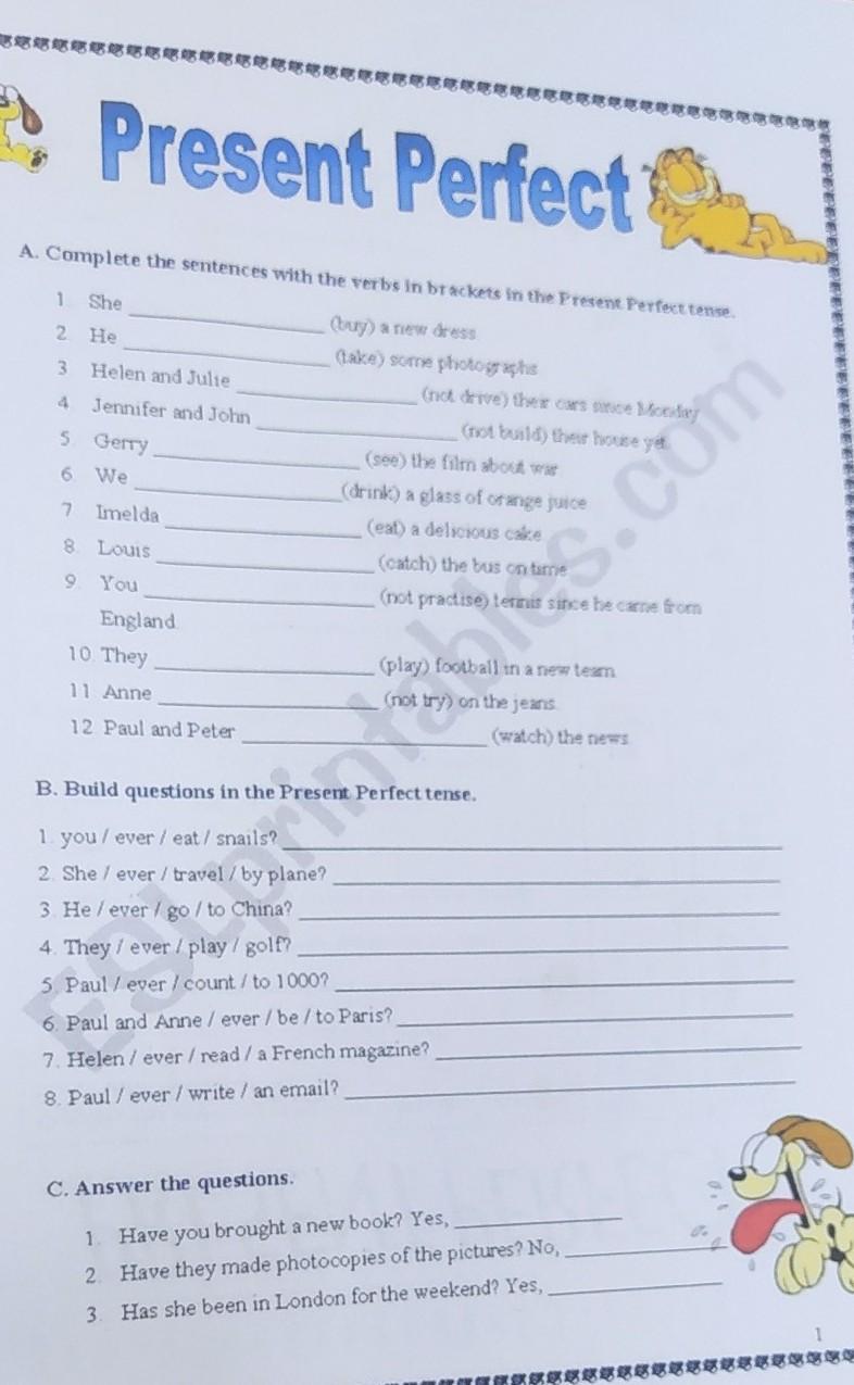 B)Build questions in the Present Perfect tence