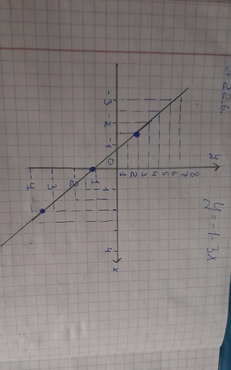 22.6. Постройте график функции, заданной формулой у=-1 - 3x. Найдите по графику: 1) значение у, соответствующее значению х, равному -3; -1; 0: 1,5; 2; 2) значение х, при котором значение у равно: -4; -2,5; -1; 3,5; 5. 145