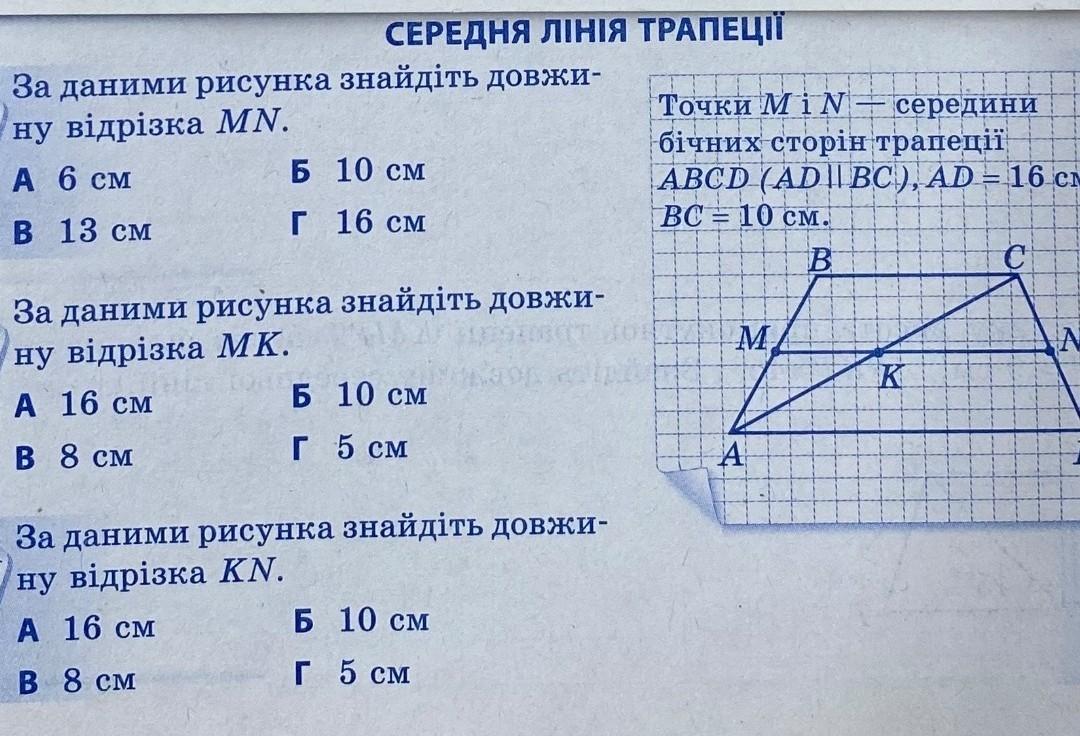1) MN=(BC+AD):2=(16+10):2=13 см
