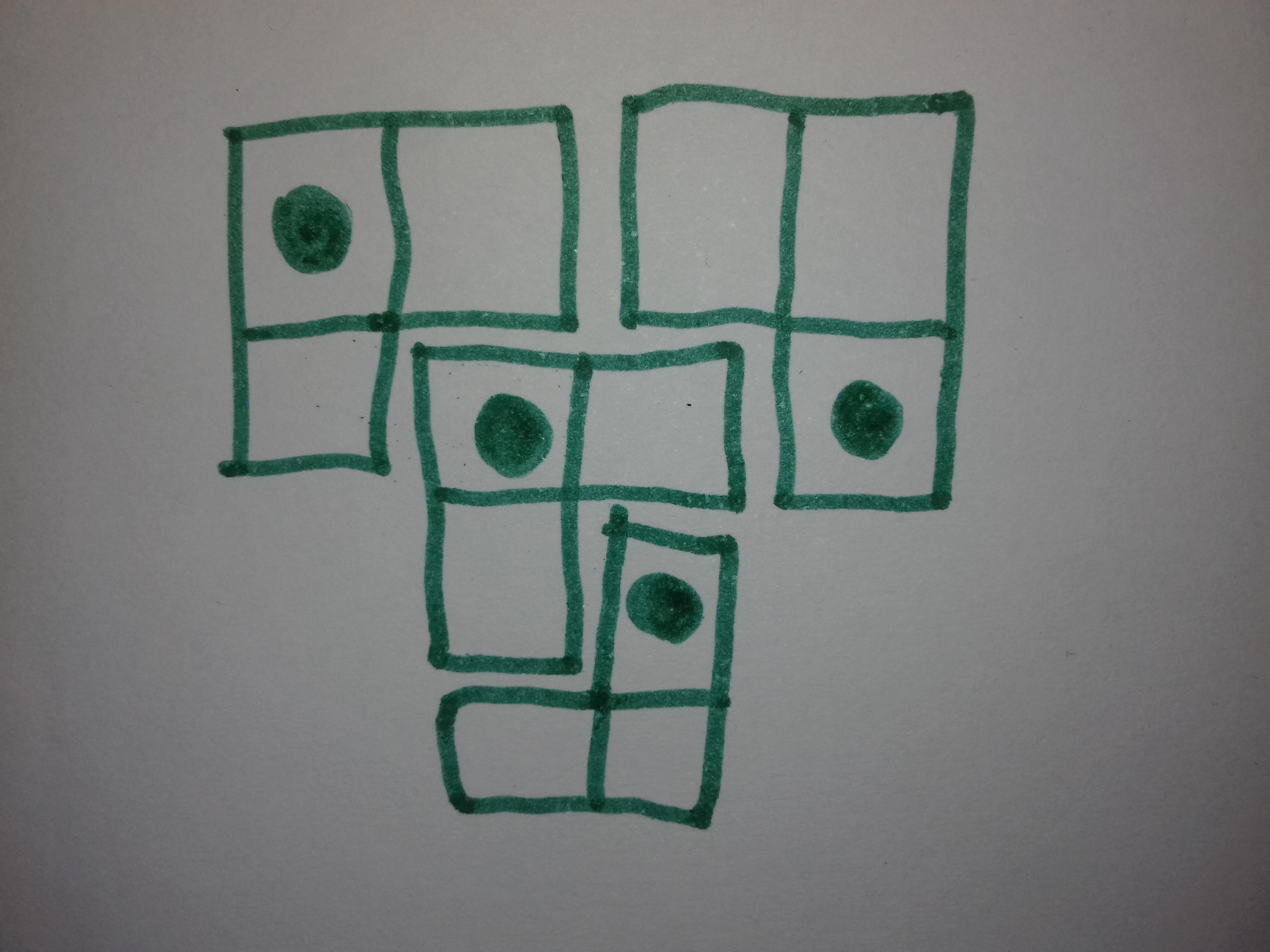 фігуру по лініях сітки на 4 однакові частини так, щоб у кожній з них було по одній відзначеній