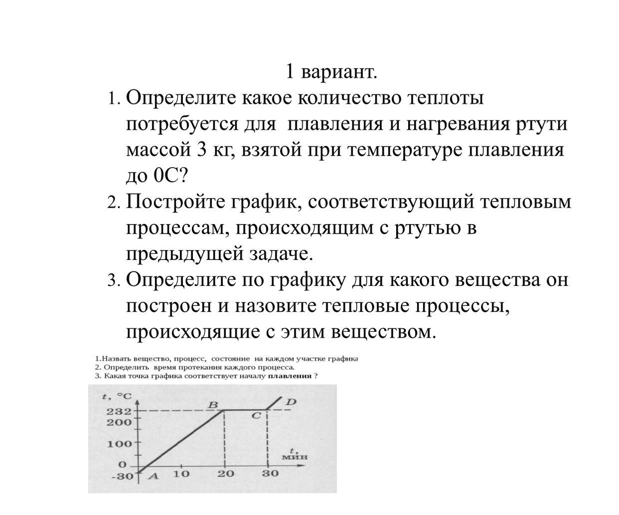 2. График тепловых процессов, происходящих с ртутью, состоял бы из двух основных частей: первая часть отмечала бы нагревание ртути от начальной температуры до температуры плавления, а вторая - плавление ртути при постоянной температуре.