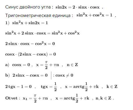 Синус двойного угла : .