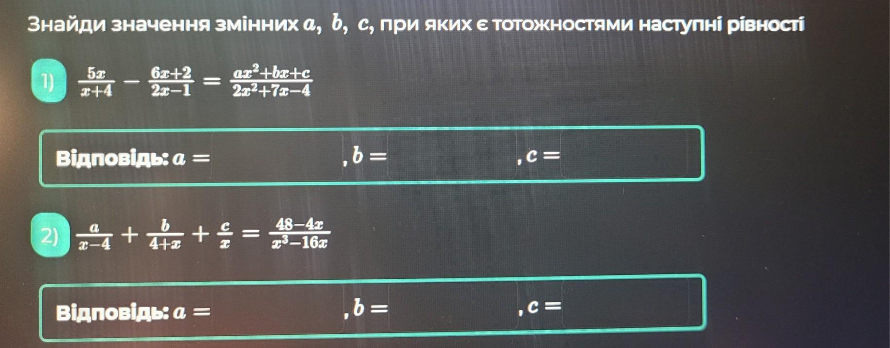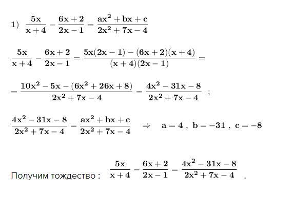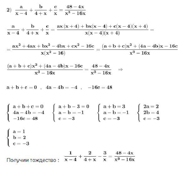 Найти значения a , b , c , при которых являются тождествами заданные равенства .