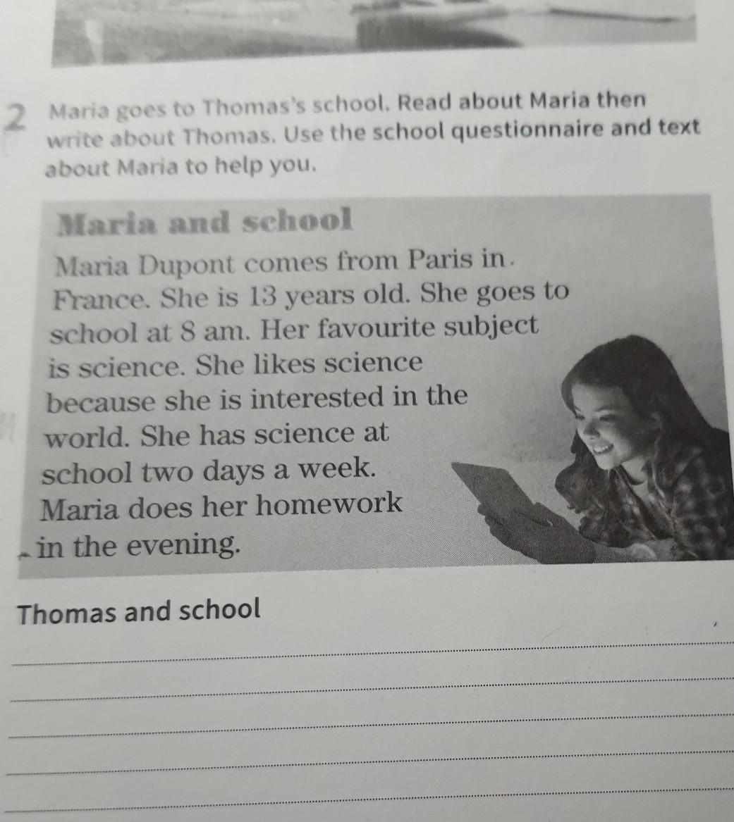 Thomas Smith is a student at the same school as Maria. He is also 13 years old and comes from London, England. Thomas starts his school day at 8 am, just like Maria. His favorite subject is history because he enjoys learning about the past and different cultures. Thomas has history lessons twice a week.