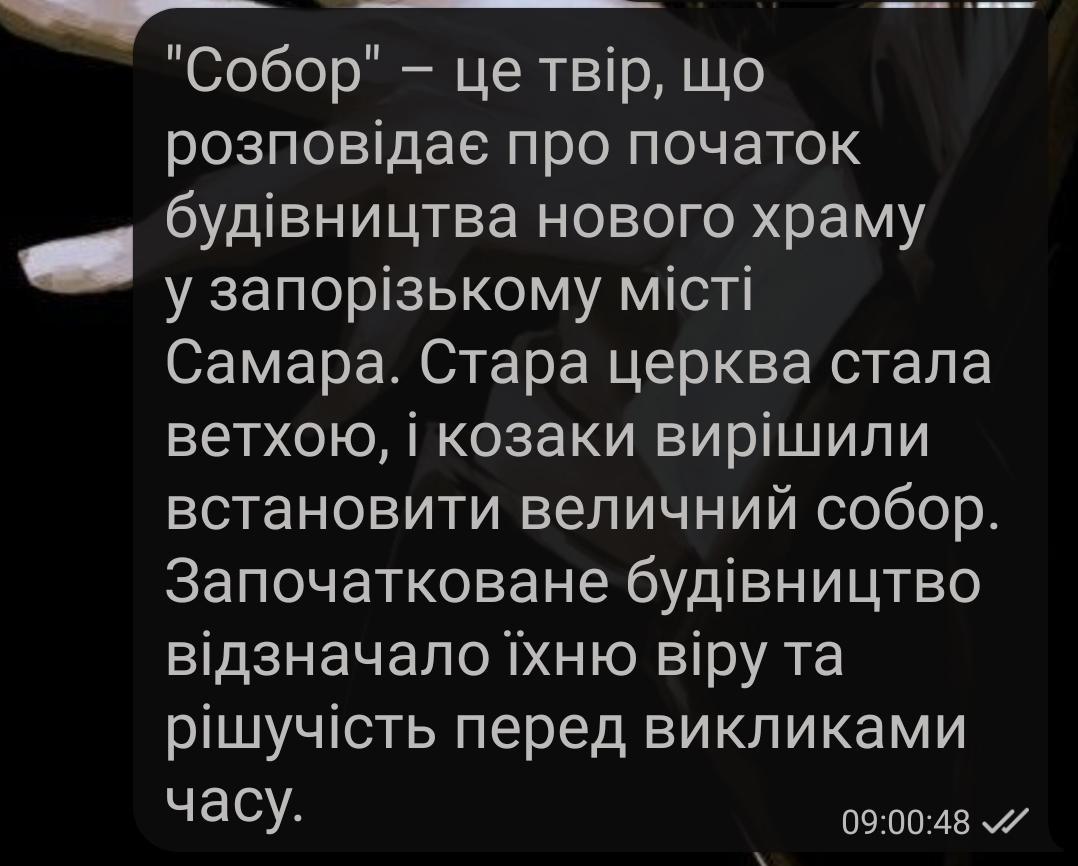 переказ твору "Собор" Початок твору, коли стара церква у запорізькому місті Самара стала ветхою козаків вони вирішили поставити новий храм найдіть твір весь будь ласка