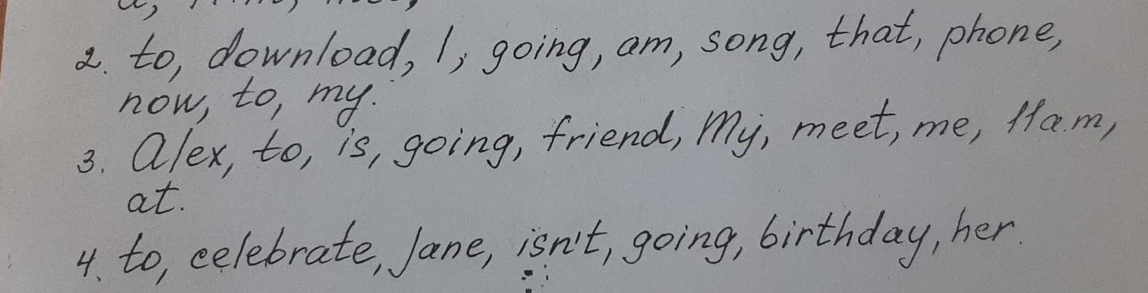 2. I am going to download that song to my phone now. 3. My friend Alex is going to meet me at 11 a.m. 4. Jane isn't going to celebrate her birthday.