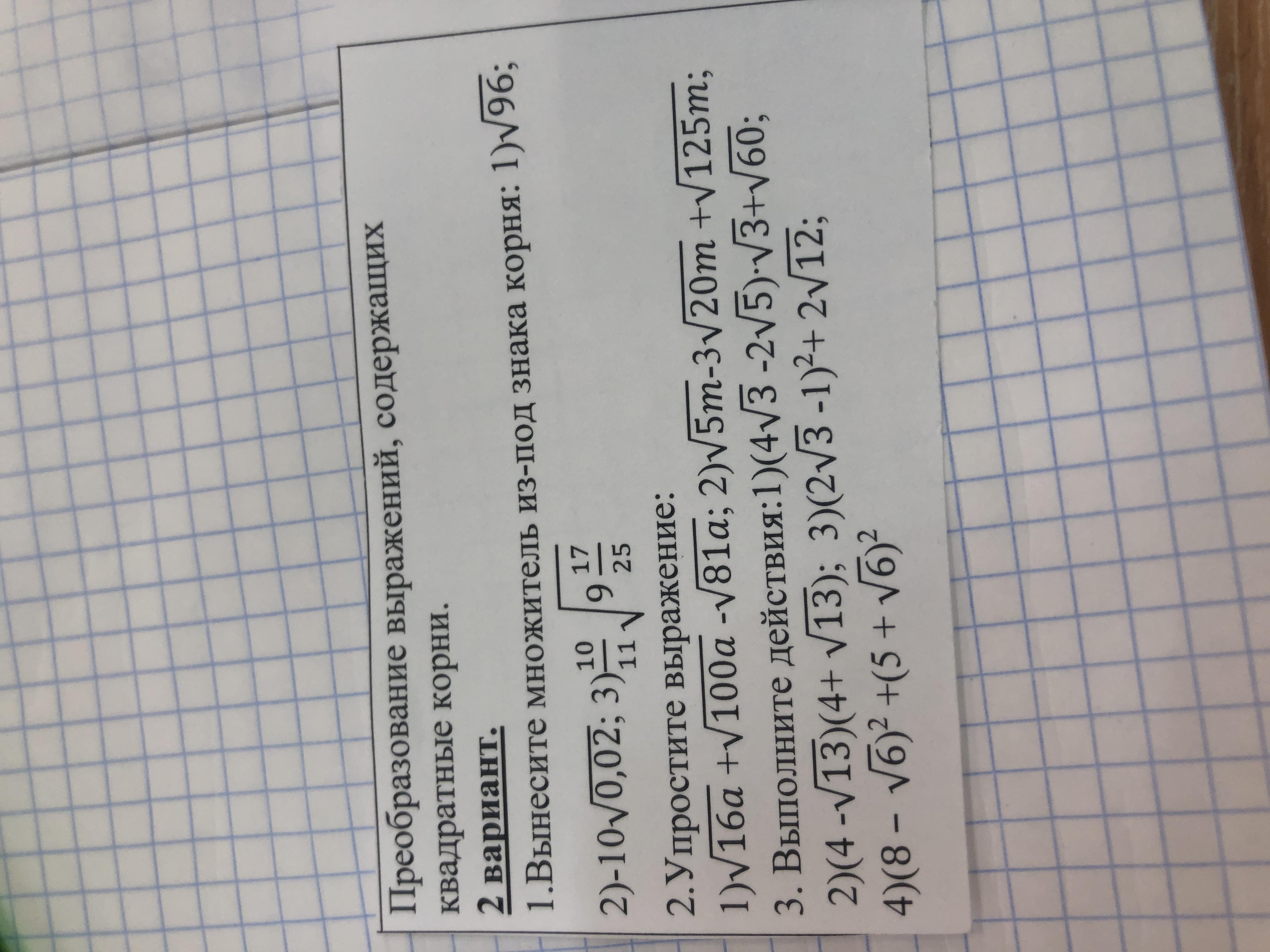 1. \(\sqrt{96} = \sqrt{16 \cdot 6} = 4\sqrt{6}\)