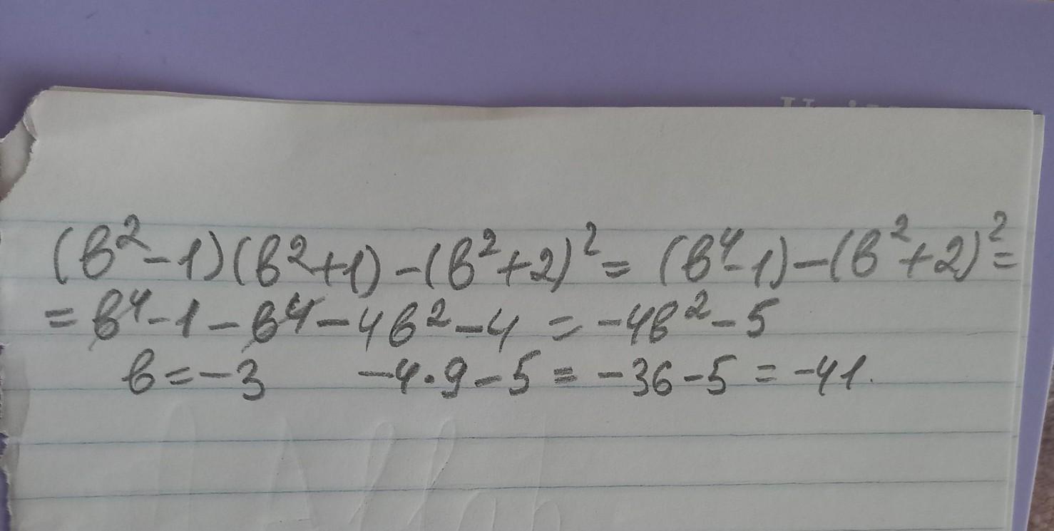 (b²-1)(b²+1)-(b²+2)²=(b²)²-1²-((b²)²+2b²•2+2²)=